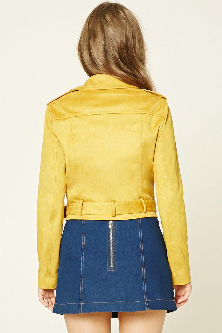 Yellow leather jacket forever 21 clearance, Forever 21 Faux Suede Moto Jacket in clearance