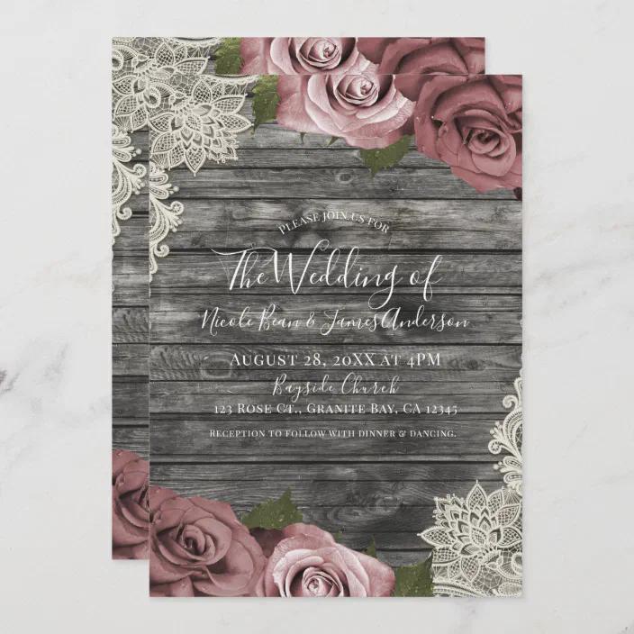 Dusty rose and gray wedding clearance, Dusty Pink Roses Grey Rustic Wood Lace clearance