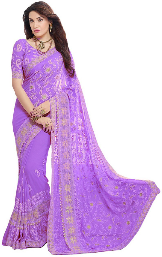 Chiffon purple saree clearance