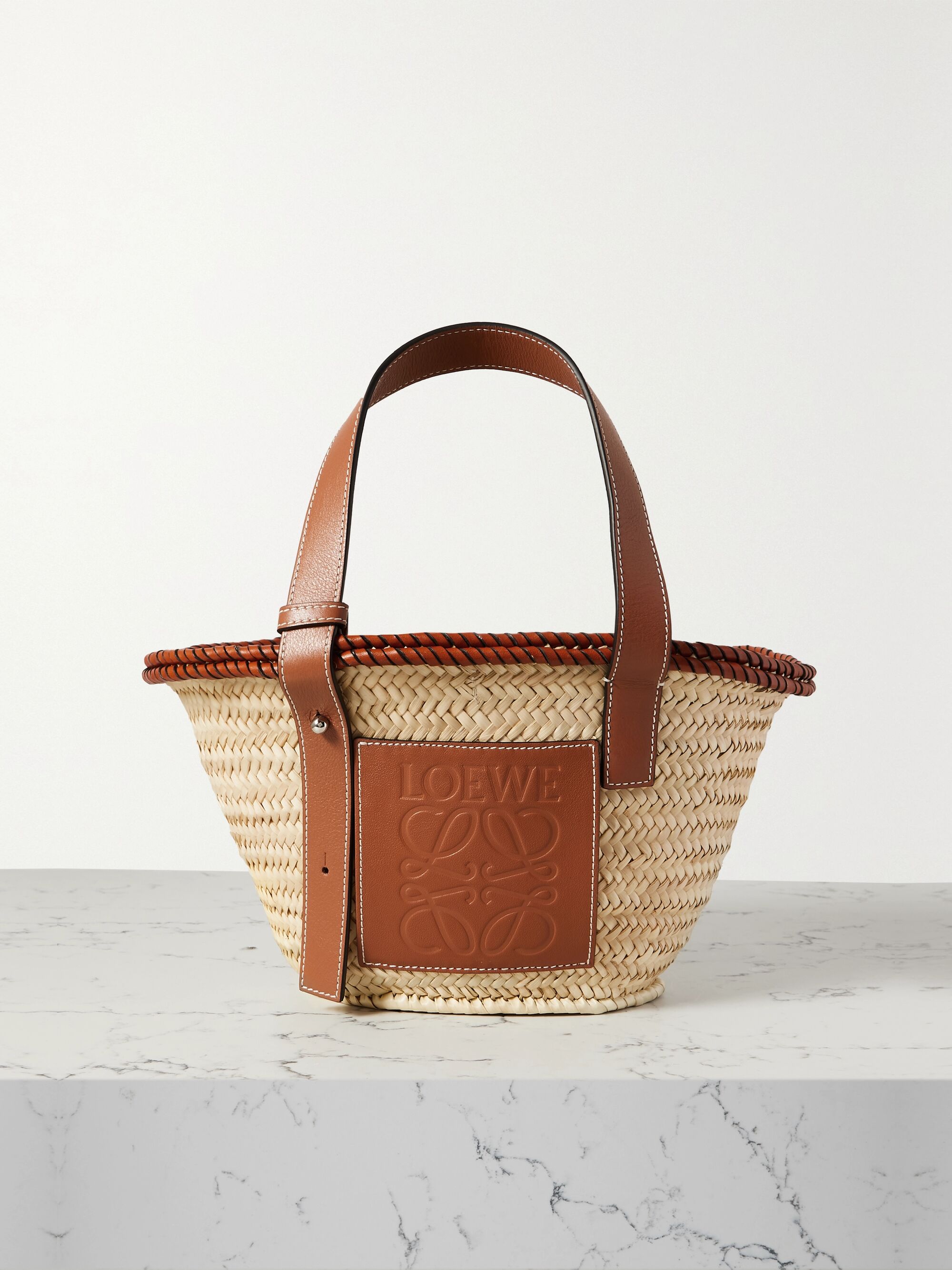 Raffia bag net a porter clearance, Blue Marcie leather-trimmed raffia tote clearance