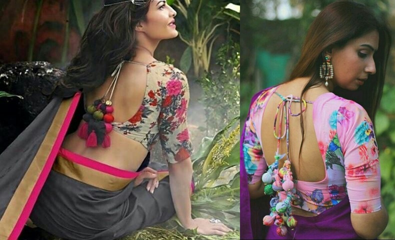 Floral blouse back neck designs clearance, Floral Printed Saree Blouse Designs clearance