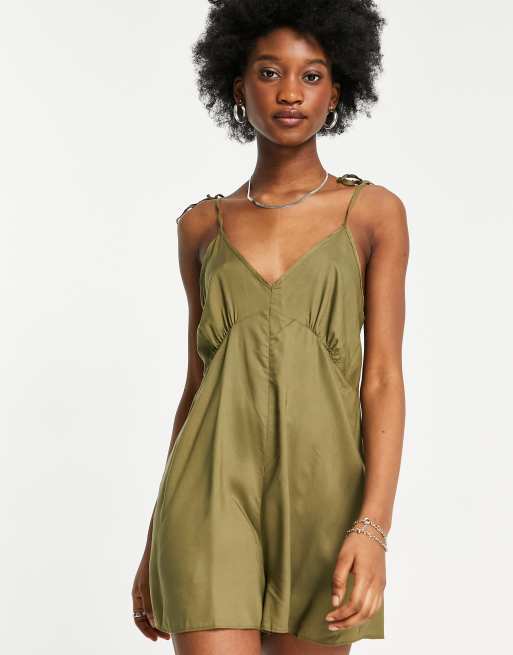 Asos khaki playsuit clearance, ASOS DESIGN v neck tie shoulder swing playsuit in khaki | ASOS clearance