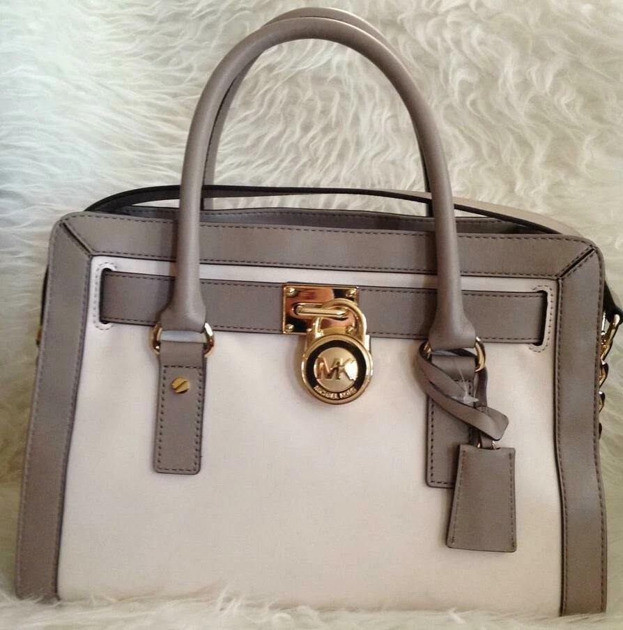 Michael kors hamilton frame out clearance, ?MICHAEL KORS HAMILTON FRAME OUT ECRU BEIGE TAUPE LEATHER GOLD SATCHEL BAG?NWT 889154884038 | eBay clearance