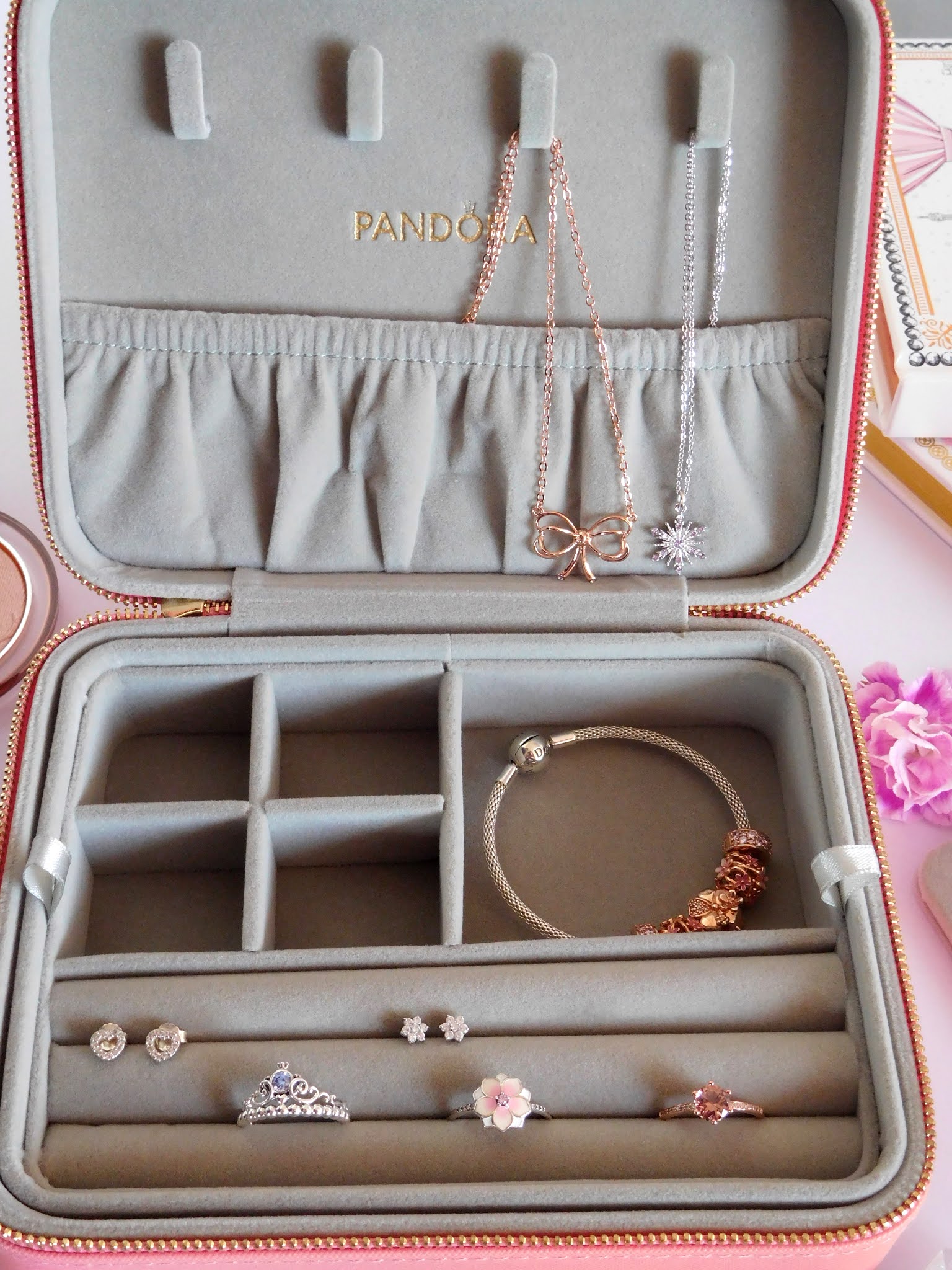 - Pandora pink travel jewelry box