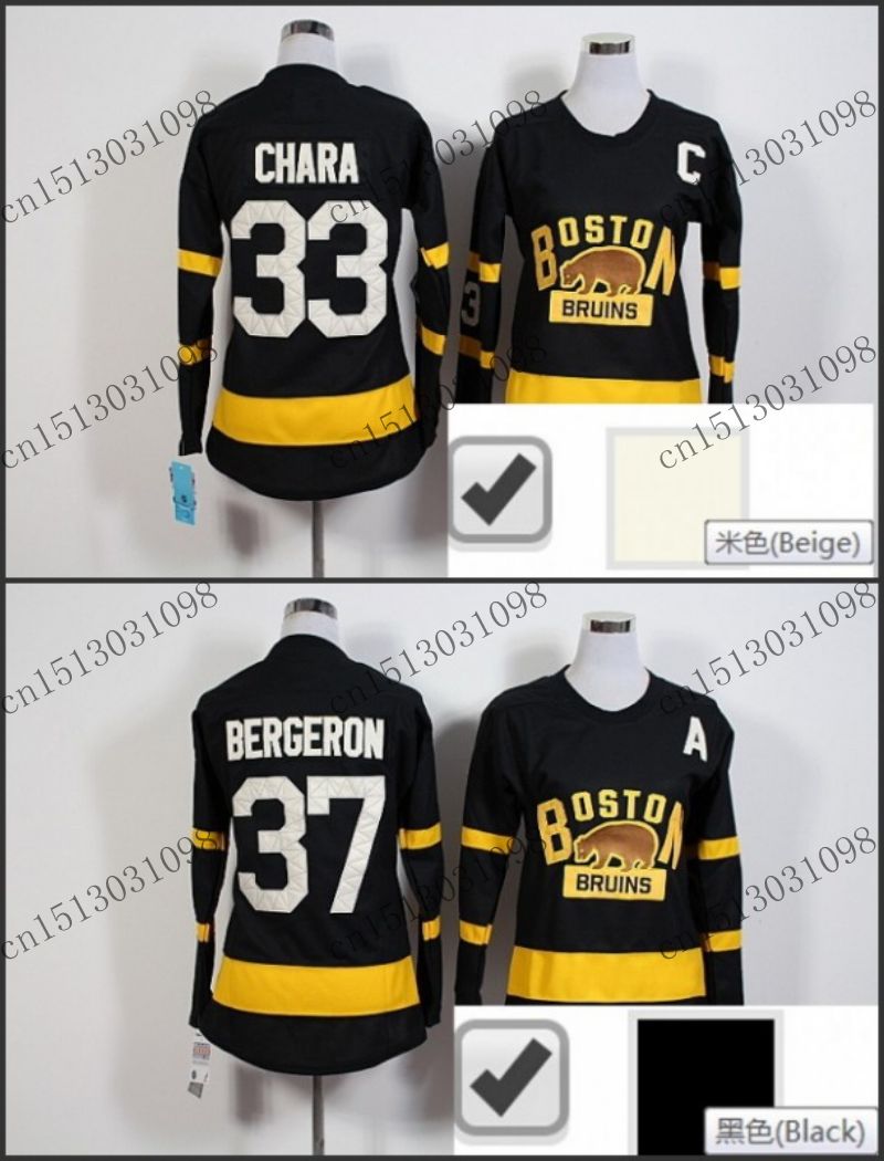 Aliexpress bruins jersey clearance, Women 2016 Winter Classic Boston Bruins #33 Zdeno Chara/#37 Patrice Bergeron Black Ice Hockey clearance
