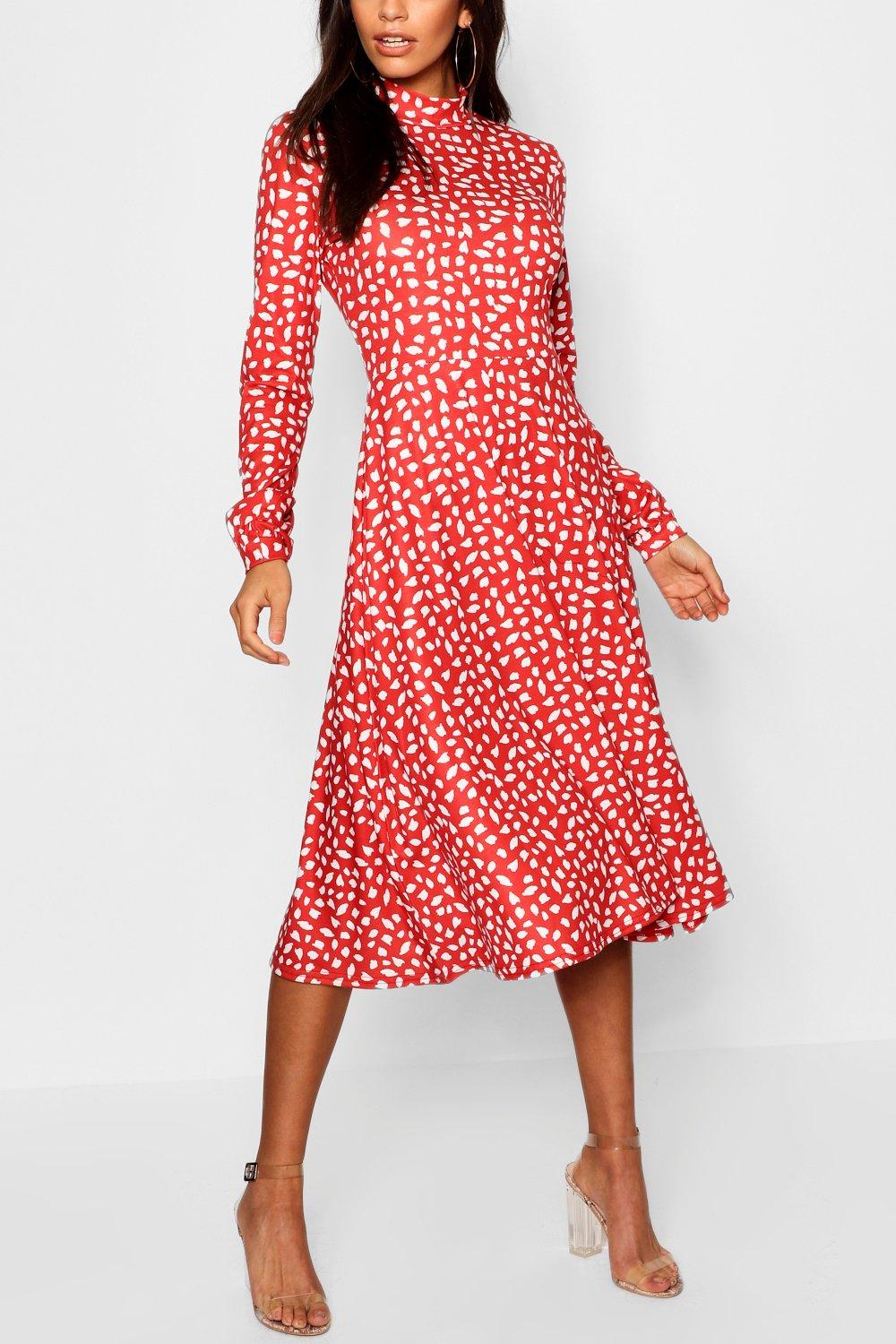 - Long sleeve dalmatian print dress clearance