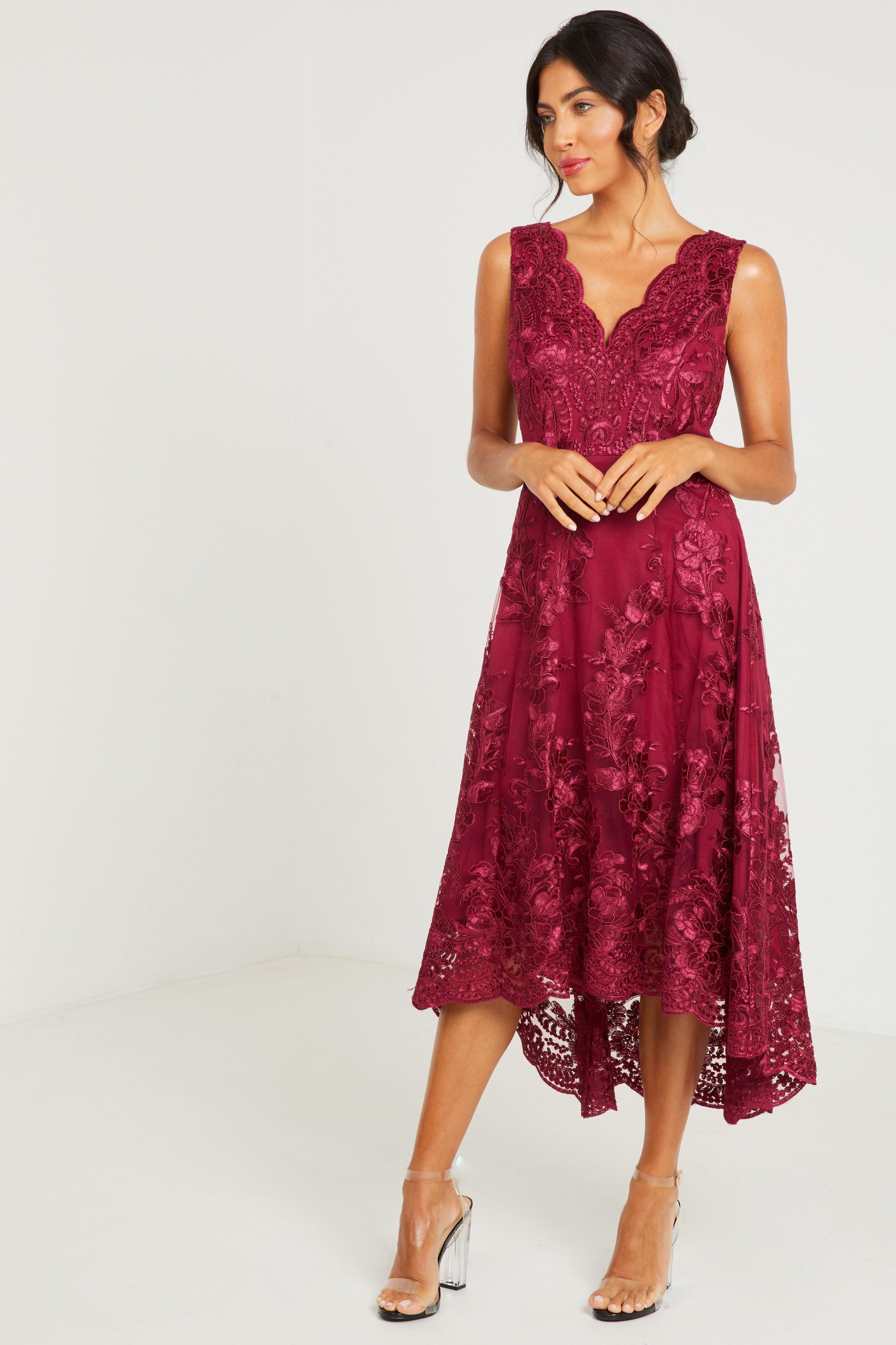 Embroidered dip hem dress clearance
