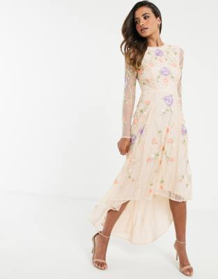 - Embroidered dip hem dress sale