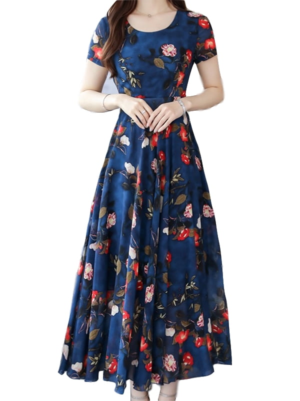 Round neck print maxi dress clearance, High Waist Short Sleeve Long Maxi Dress clearance