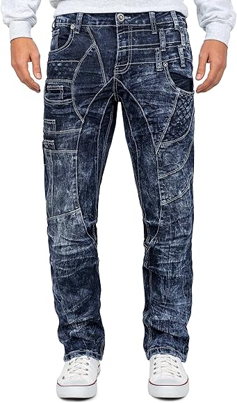 Kosmo lupo hose clearance, Kosmo Lupo Herren Jeans Kontrastnähten Regular-Fit Freizeit Hose Clubwear Designer Dope Cargo Style clearance
