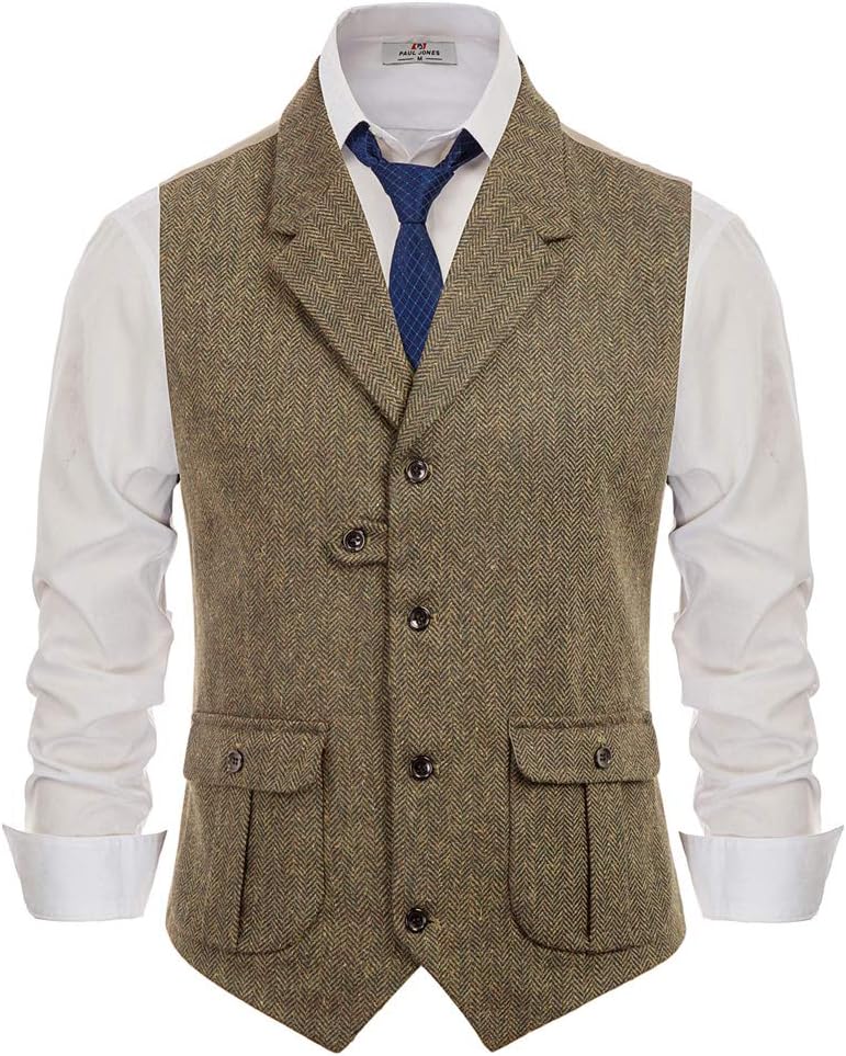 1920's mens summer fashion clearance, PJ PAUL JONES Men's Herringbone Tweed Suit Vest Casual Wool Blend Waistcoat clearance