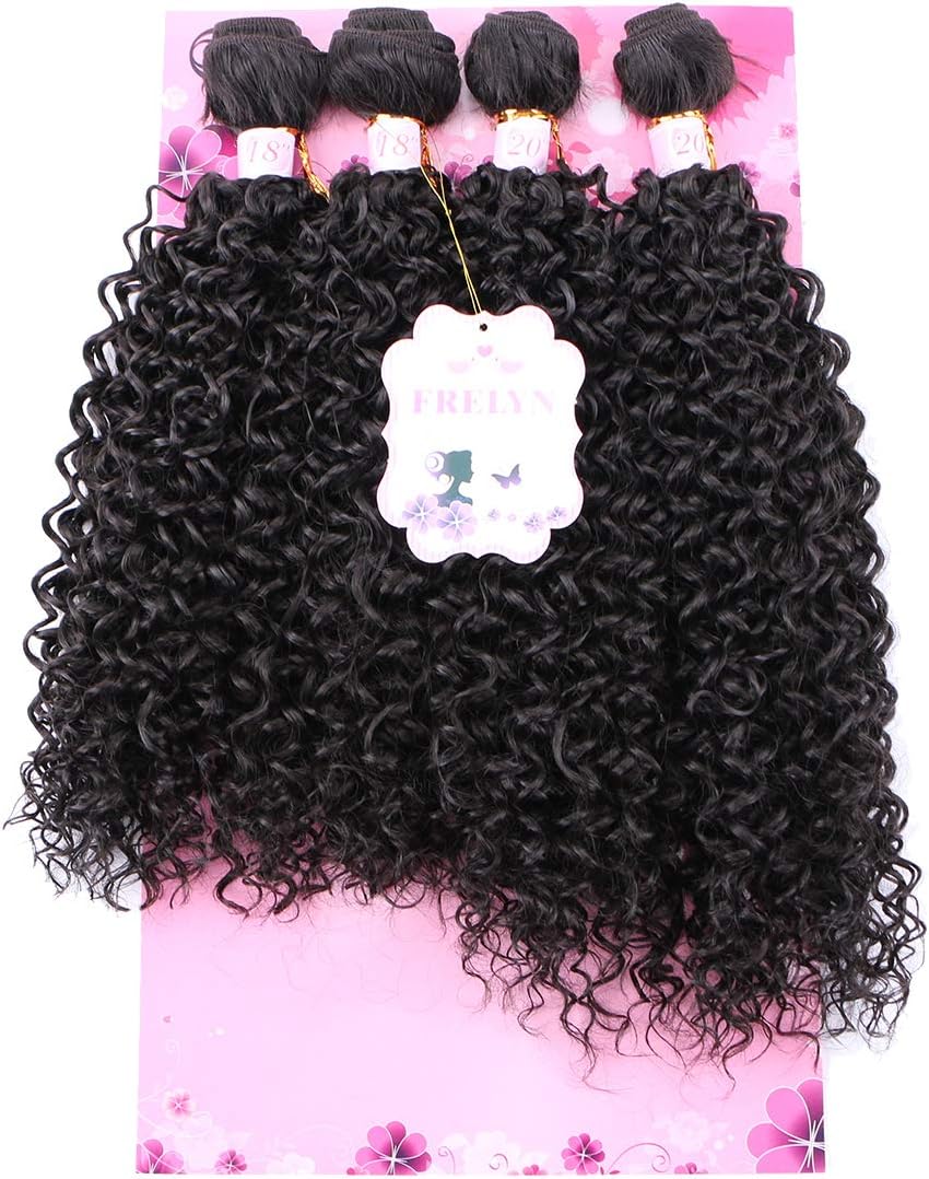 Price of hair weave clearance, Frelyn Kinky Curly Bundles Synthetic Hair Weave Extensions 2# Dark Brown 18 18 20 20 Inches 4 PCS, Heat Resistant Fiber So... clearance