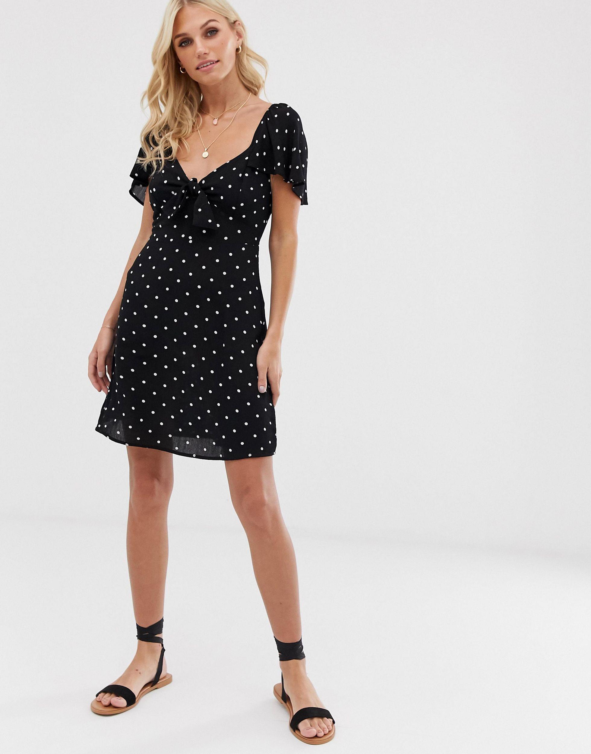 Stradivarius vestito a pois clearance, Stradivarius Denim Tie Front Dress in clearance
