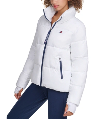Cropped puffer thumbhole coat clearance, Tommy Hilfiger Sport Cropped Puffer Thumbhole Coat In White | ModeSens clearance