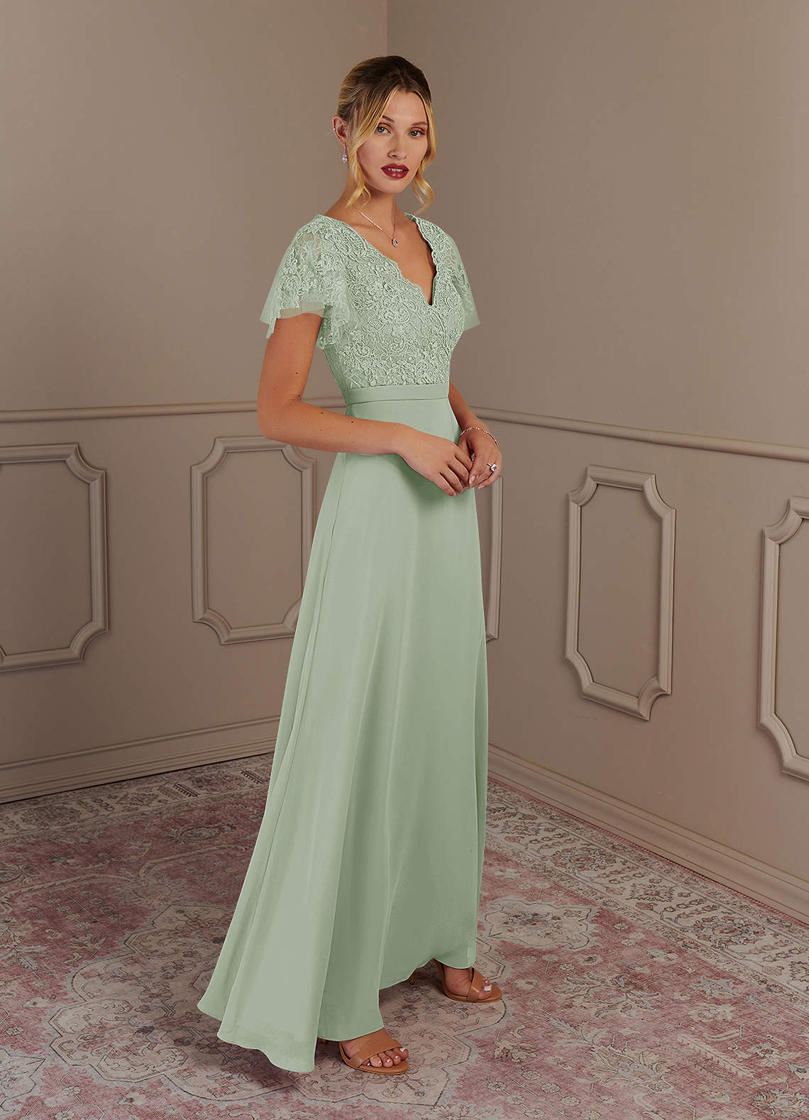 Chiffon kleid rückenfrei clearance, Azazie Singer clearance