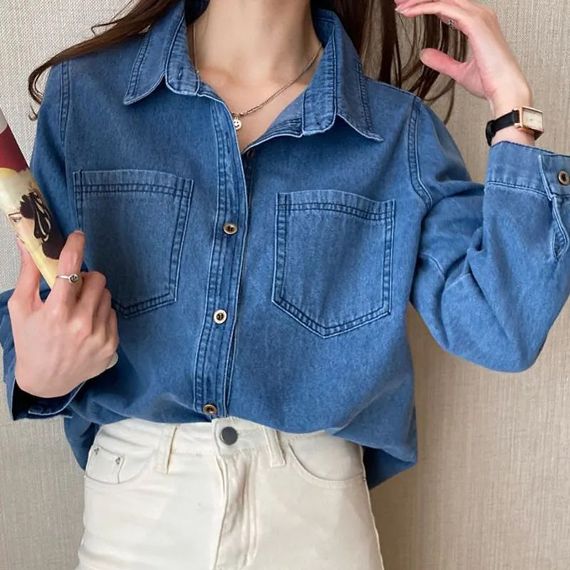 Jeansbluse damen lang clearance