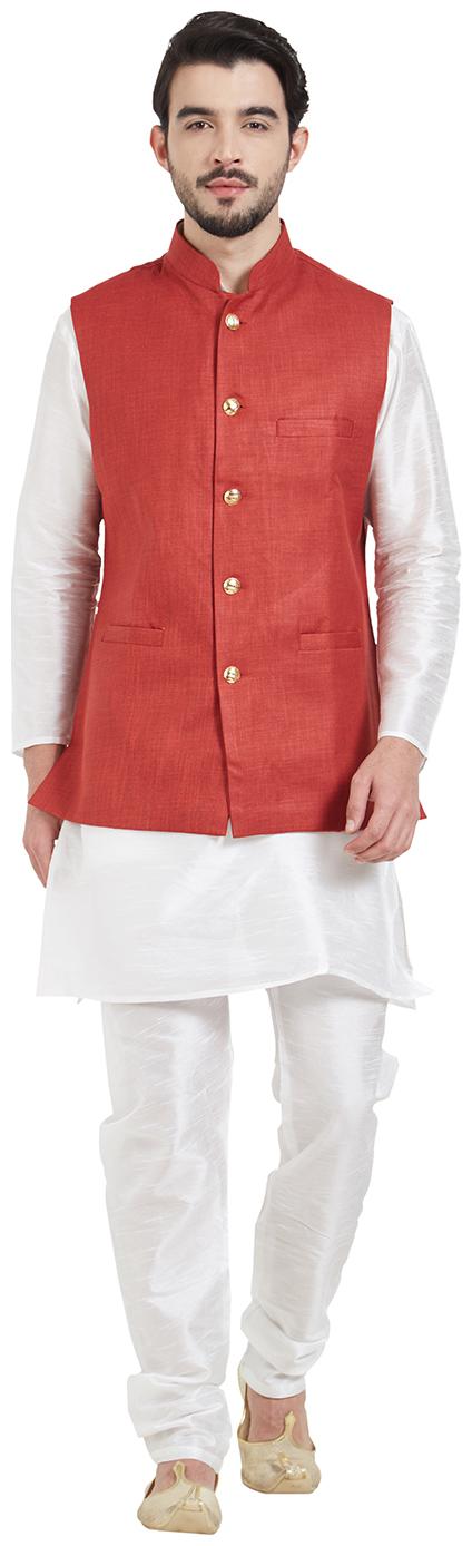 White kurta with maroon waistcoat clearance
