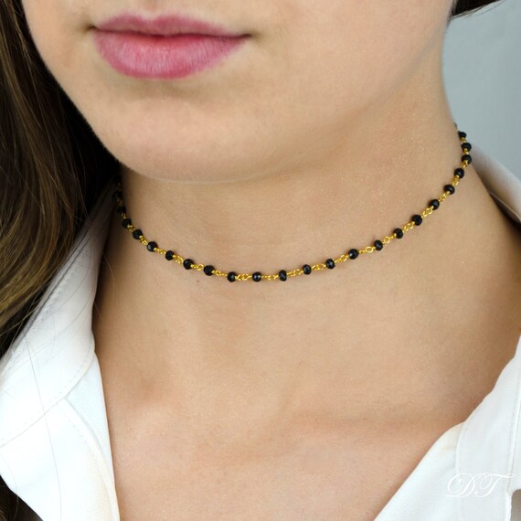 Black and gold choker clearance, Black Beaded Choker Necklace Black Onyx clearance