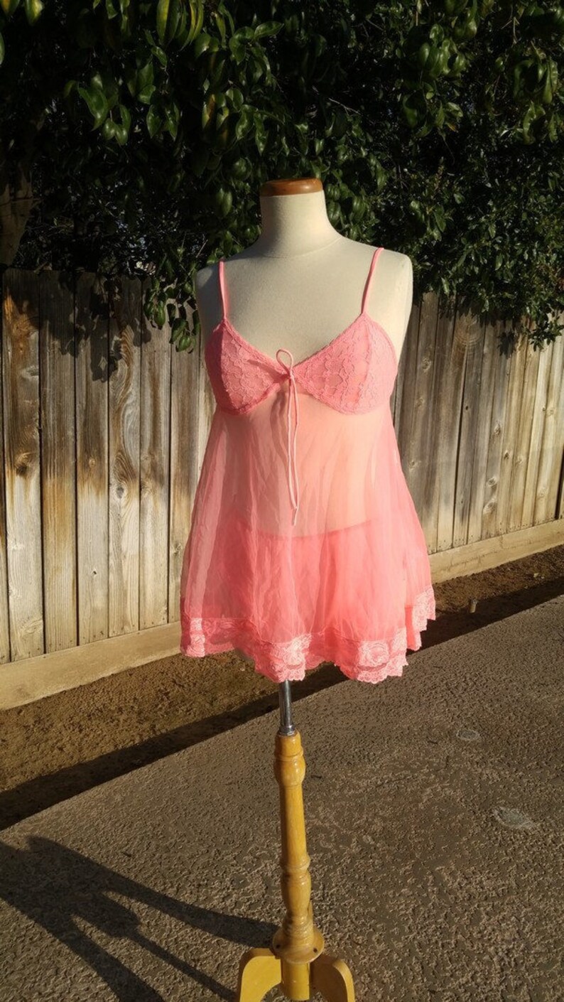 Cantaloupe panties clearance, Sheer Neon Melon Nylon Chiffon Peignoir Babydoll Panties | Etsy clearance