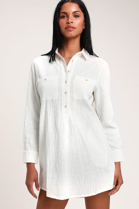 - White long sleeve shirt dress womens sale