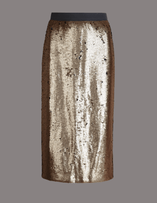 Cream sequin skirt clearance, Reversible Sequin Midi Skirt clearance