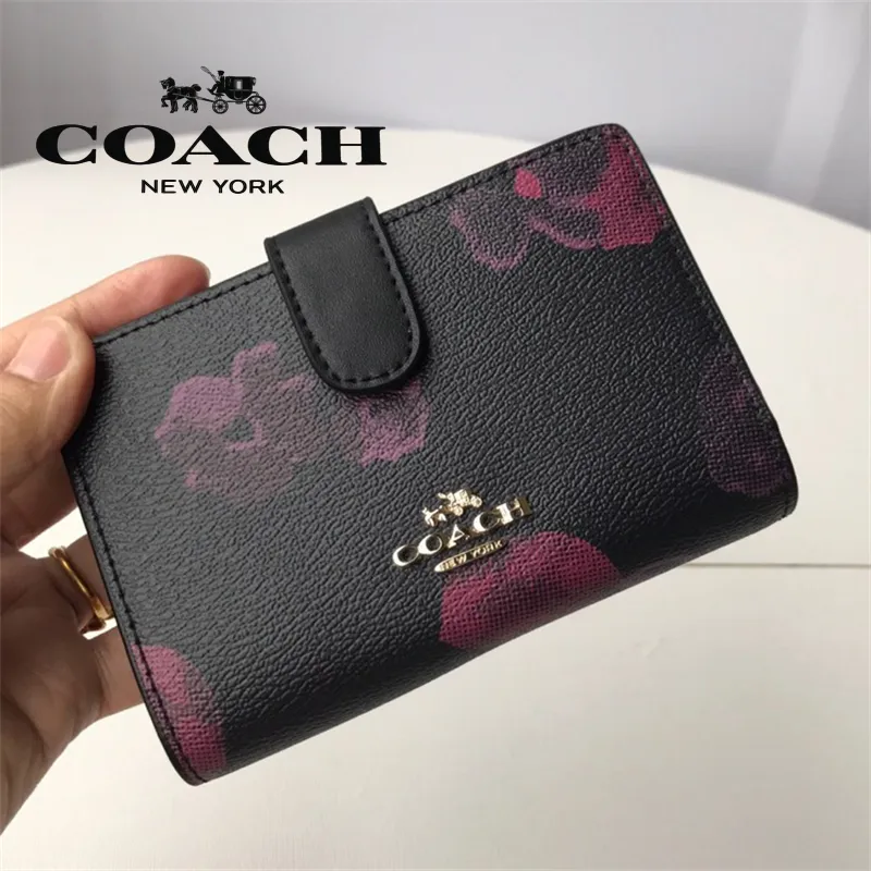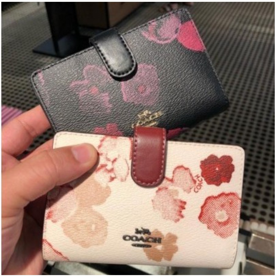 Coach f39127 clearance, Coach official store women authentic wallets F39127 leather button zipper camellia printing mid-length wallet for women size: 13.5*9*3cm | Lazada PH clearance