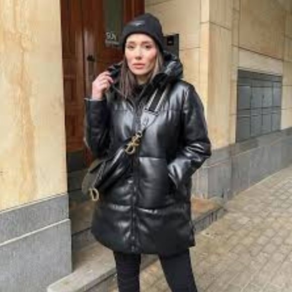 - Zara hooded faux leather jacket free shipping