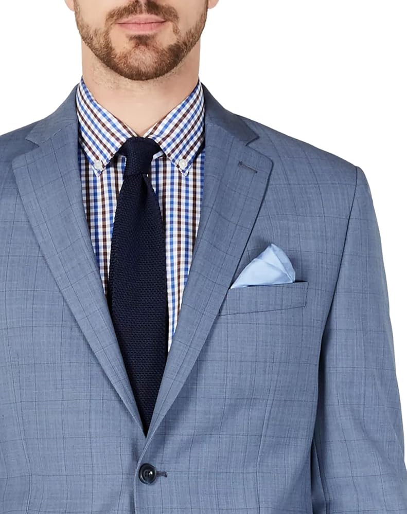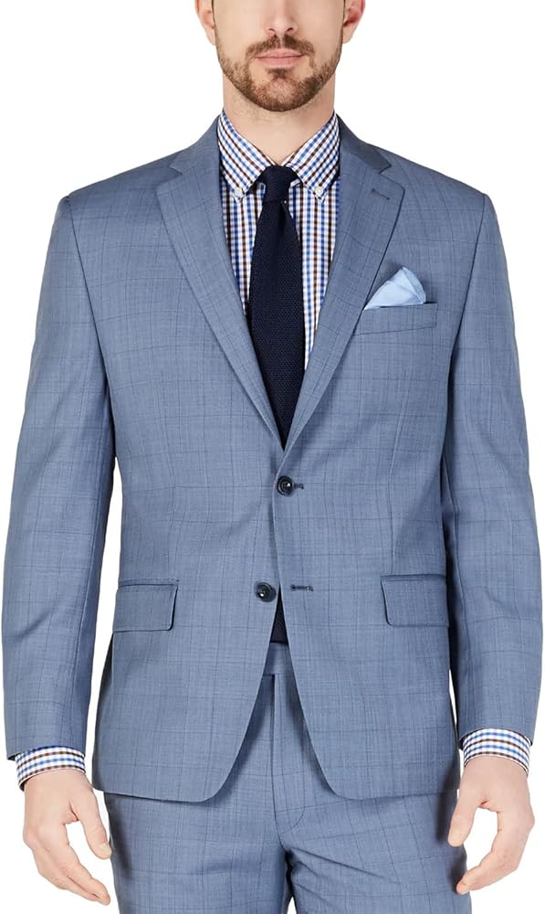 Michael kors windowpane suit clearance, Michael Kors Mens Windowpane Wool Suit Jacket 44 Long Light Blue at Amazon Men's Clothing store clearance