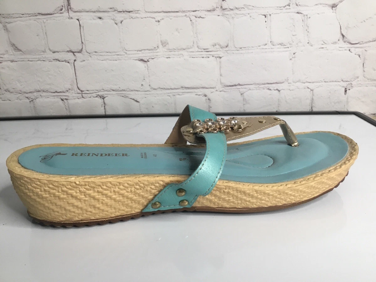 Turquoise sandals size 9 clearance, Reindeer Womens Low Wedge Turquoise Sandals,Embellished slip On Size 9,5 | eBay clearance