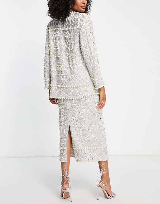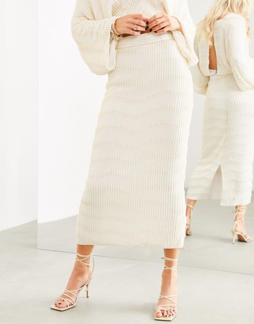 Asos pearl skirt clearance, ASOS EDITION linear pearl embellished midi skirt in white | ASOS clearance