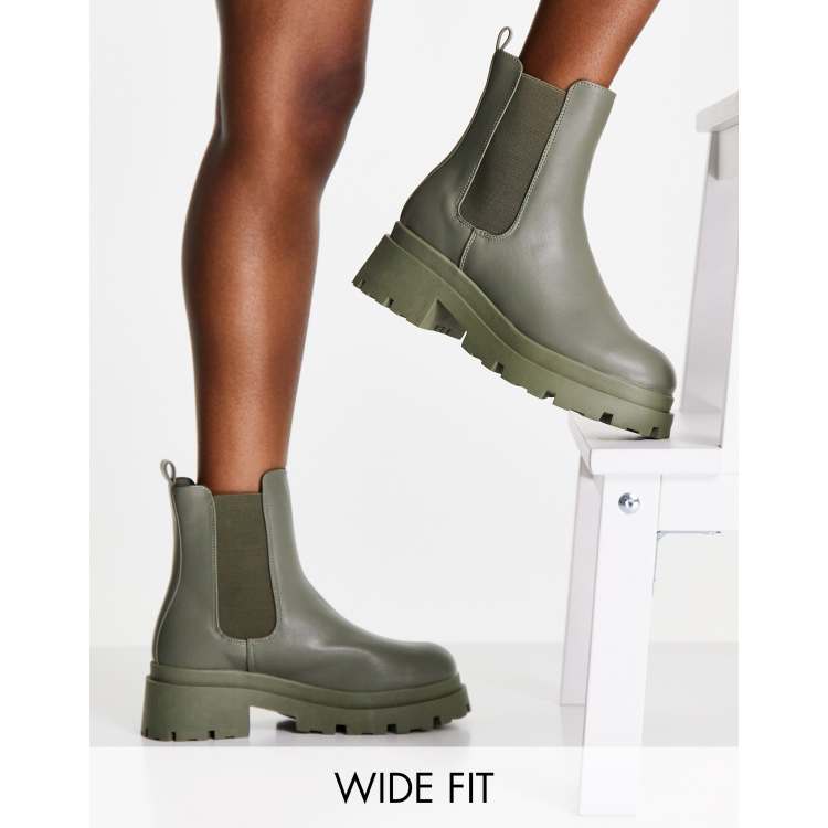 Asos khaki boots clearance, ASOS DESIGN Wide Fit Archer chunky chelsea boots in khaki | ASOS clearance