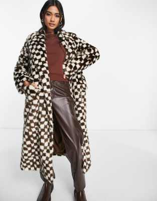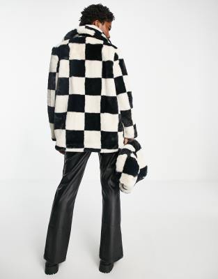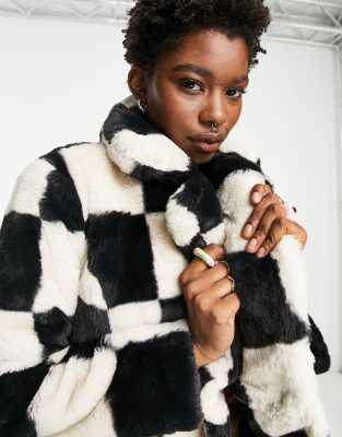 - Checkerboard faux fur coat outlet