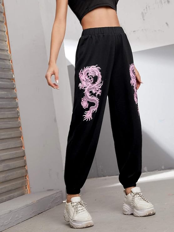 Pink dragon sweatpants clearance, SweatyRocks Women's High Waist Joggers clearance