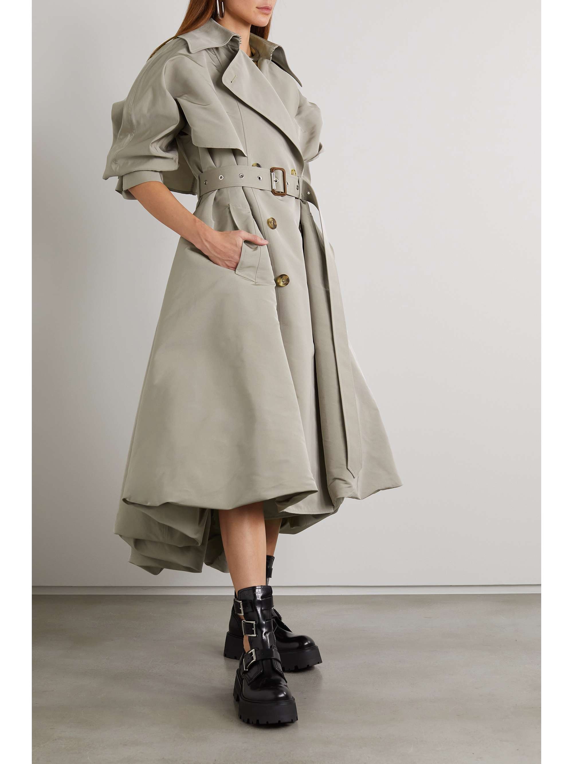 Mcqueen trench coat clearance, Tan Belted double-breasted gabardine clearance