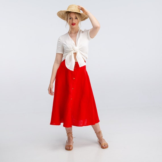 Red linen skirt clearance