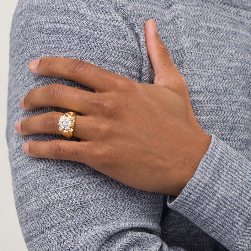 Mens diamond pinky rings zales clearance, Men's 1/3 CT. T.W. Composite Diamond Ribbed Shank Signet Ring in Sterling Silver with 14K Gold Plate | Zales clearance