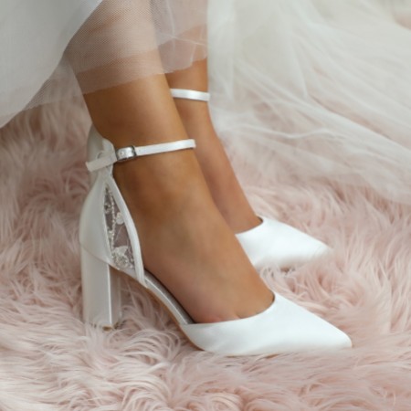 - Satin block heel wedding shoes