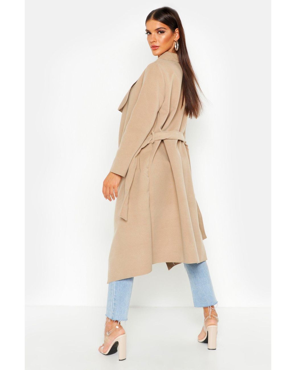 Long waterfall coat clearance, Boohoo Belted Waterfall Coat in Black clearance