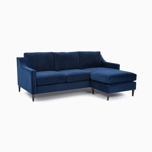 West elm blue velvet sectional clearance, Andes 3-Piece Chaise Sectional | Blue clearance