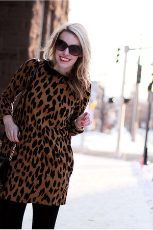 - Leopard print dress black tights shop
