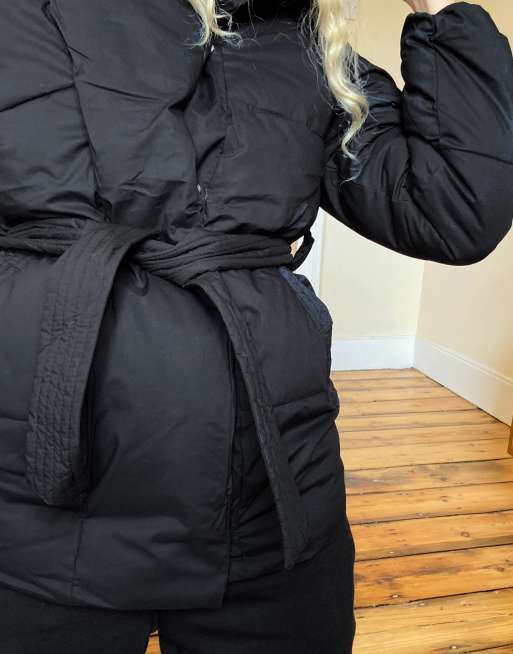 - Bershka belted padded puffer jacket with hood sold