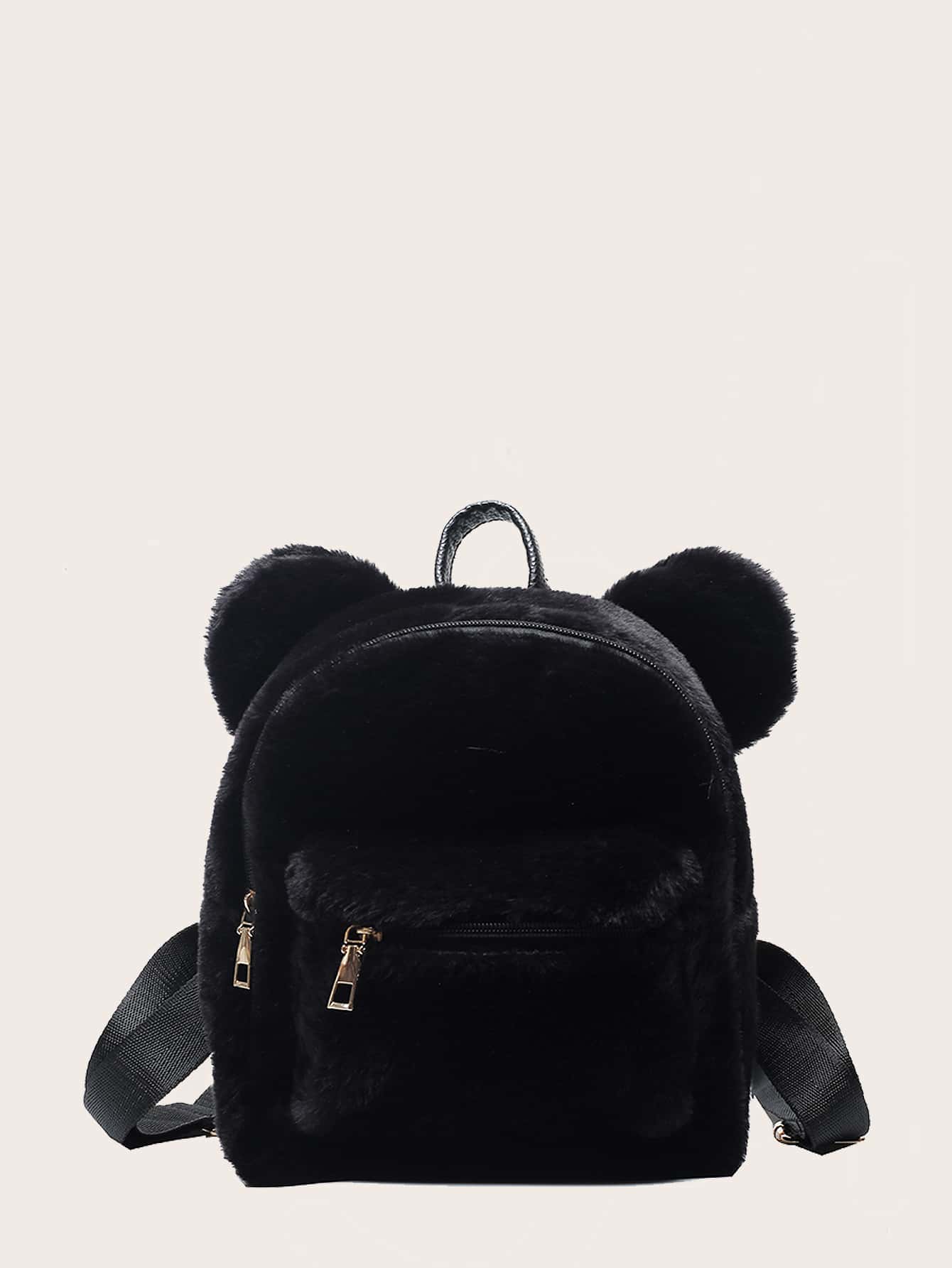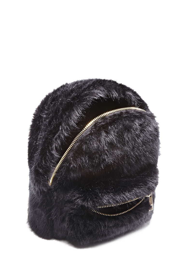 Fluffy black backpack clearance