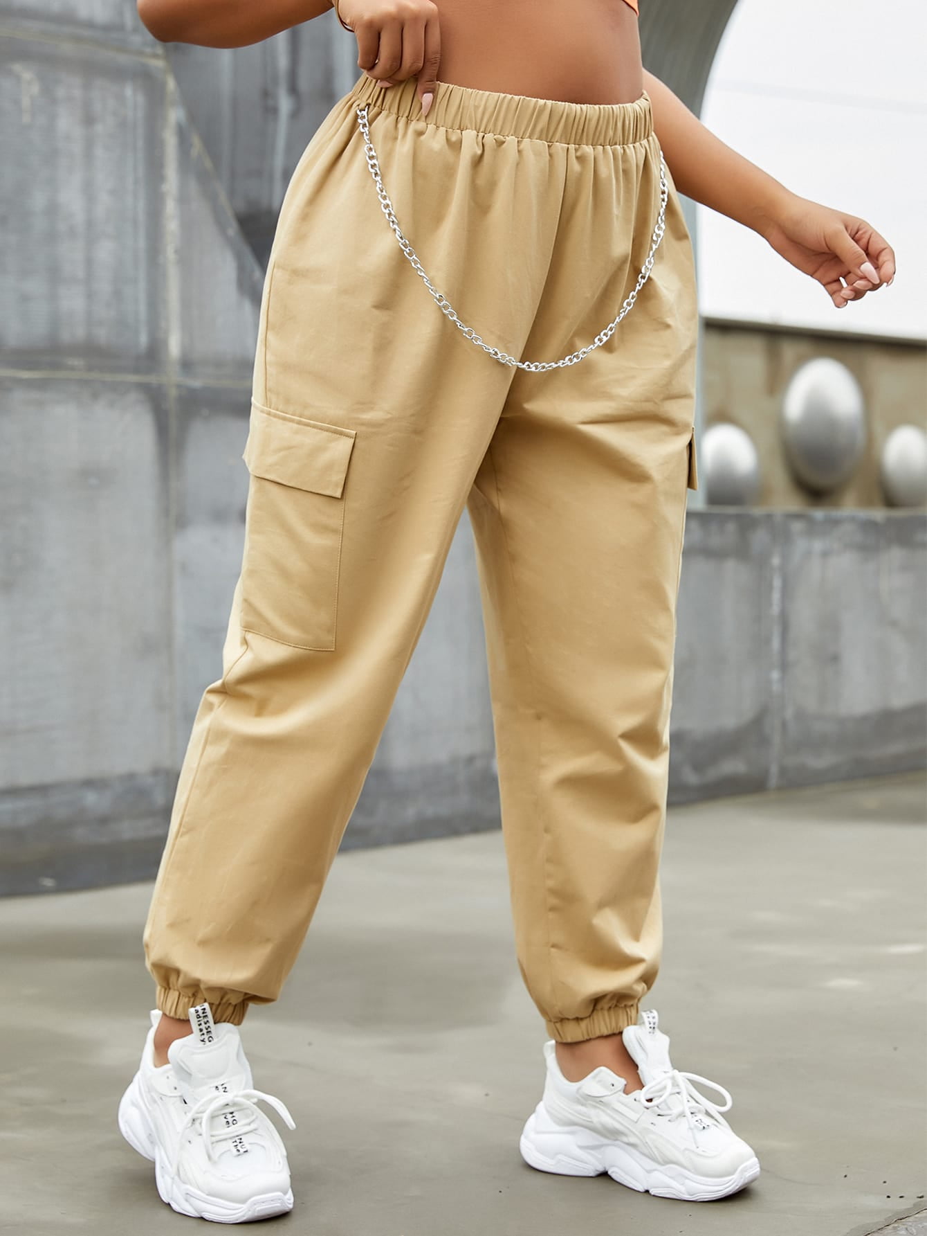 Flap pocket side cargo jeans clearance, Flap Pocket Side Elastic Waist Cargo clearance