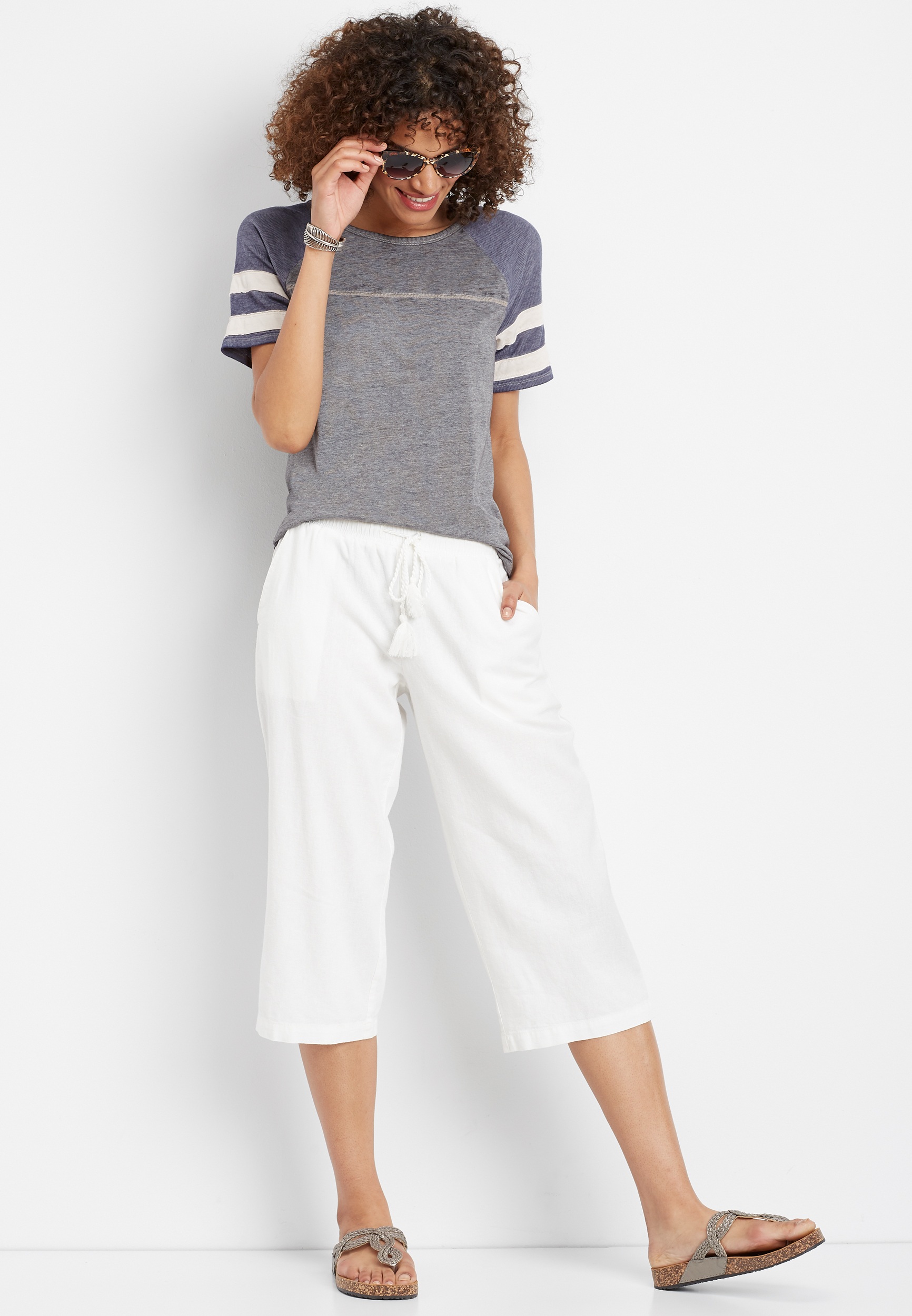 - White linen cropped pants