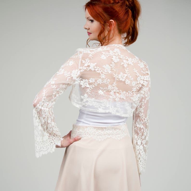 Bell sleeve bolero clearance, Ladies White Lace Long Bell Sleeve Bolero Shrug clearance