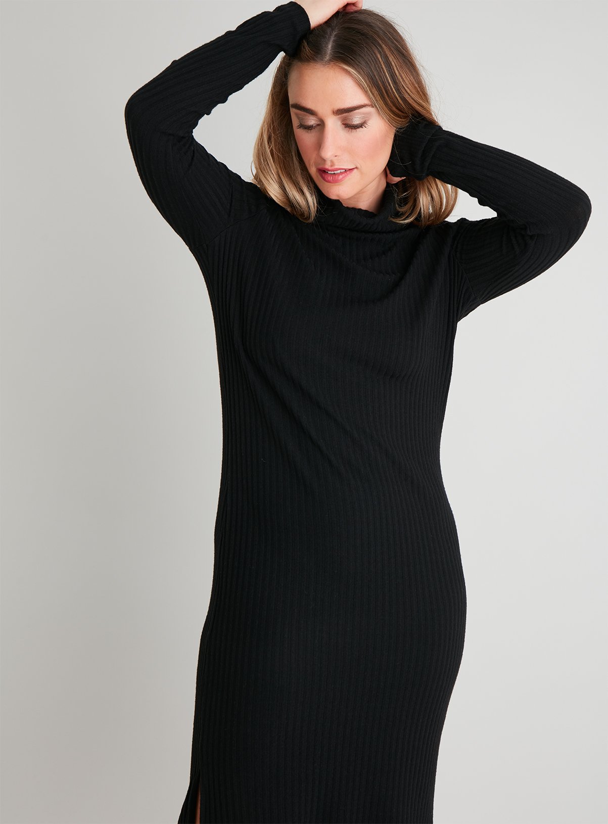 Ribbed roll neck dress clearance, Black Ribbed Knitted Roll Neck Dress clearance