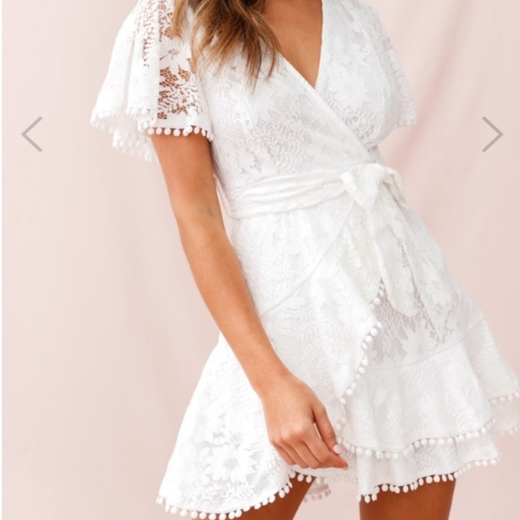 - Cami angel sleeve faux wrap dress white sold