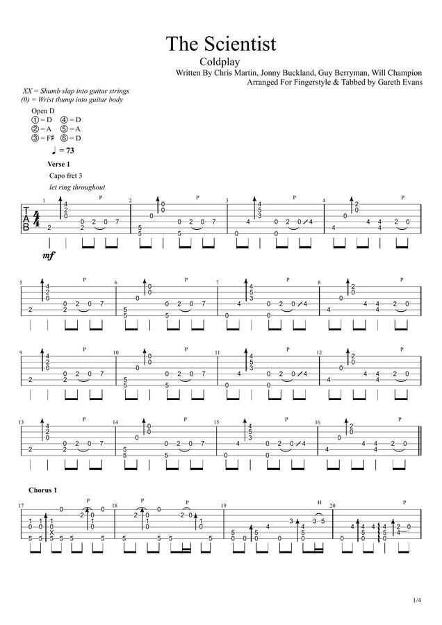 The scientist fingerstyle clearance, THE SCIENTIST FINGERSTYLE GUITAR TAB clearance