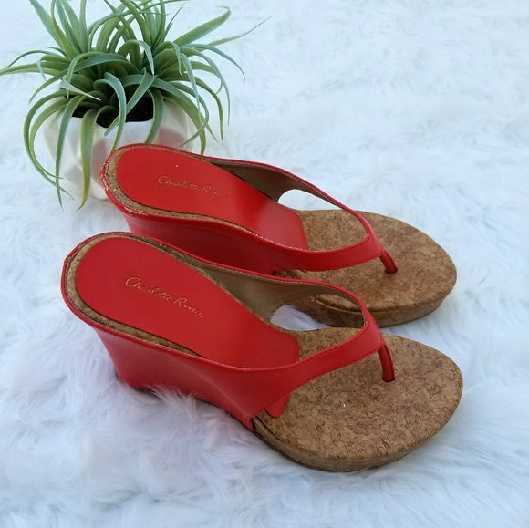 Red thong wedge sandals clearance, Charlotte Russe Red Slip On Thong Wedge clearance