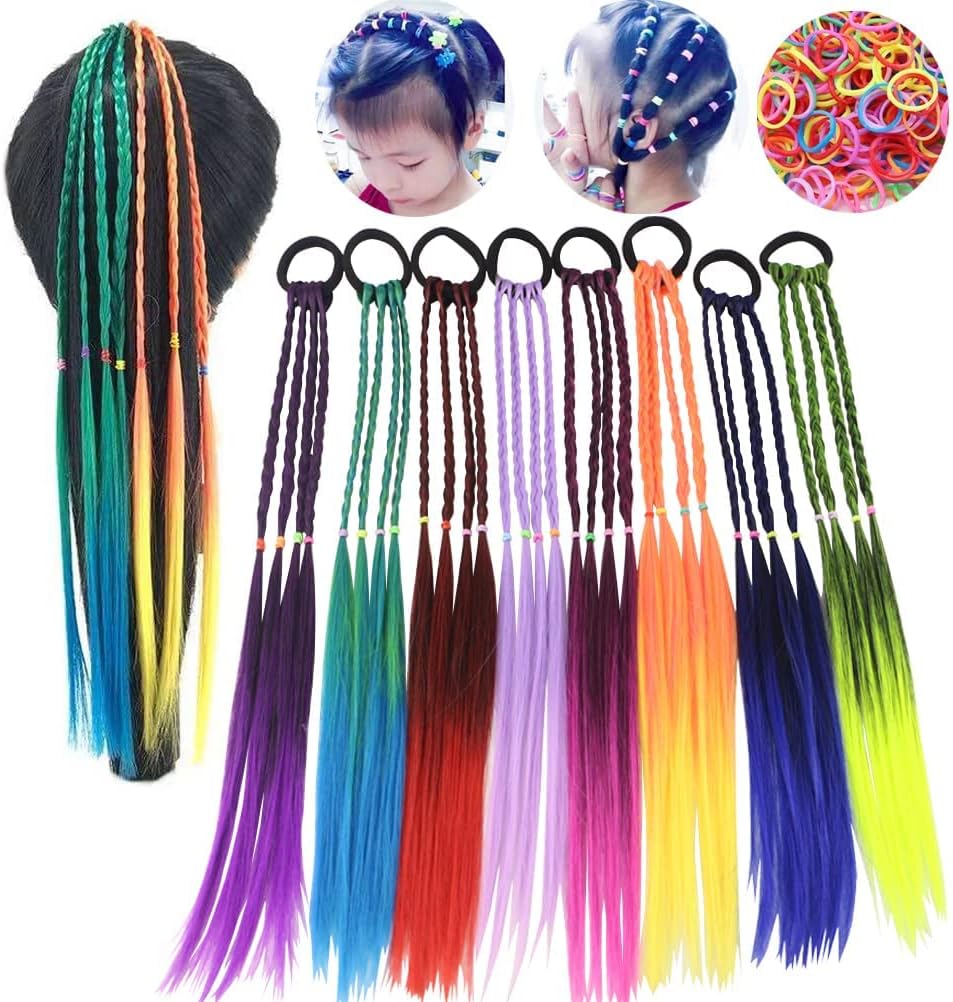 Rubber hair extensions clearance, Coriario 8 Pieces Colored Braids Hair Extensions with Rubber Bands Rainbow Ponytails Braided Colorful Hair Extension for K... clearance